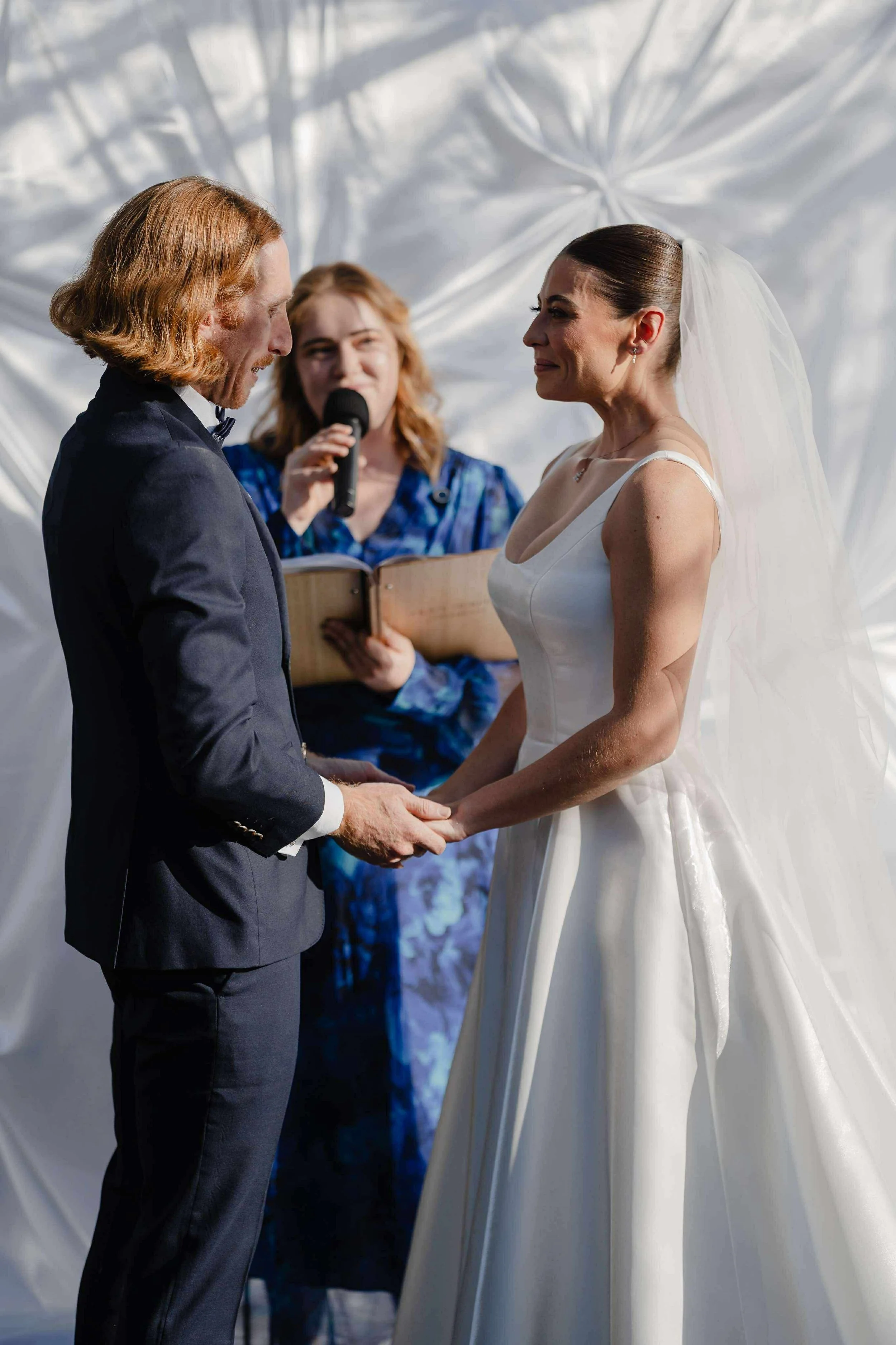 “Kait was our first and only choice when it came to officiating our wedding. From start to finish, the process was well organised straight forward and stress free. Nothing we asked or needed from her was too difficult or taxing. Kait was able to keep everyone focused during our rehearsal the day before, which left us feeling a great sense of calm leading into our wedding. The ceremony itself was beautifully written, with a perfect mix of laughter and space for many happy tears. Kait’s vow books and the bespoke personalised gift was an unexpected surprise. We highly recommend Kait as a celebrant. ”